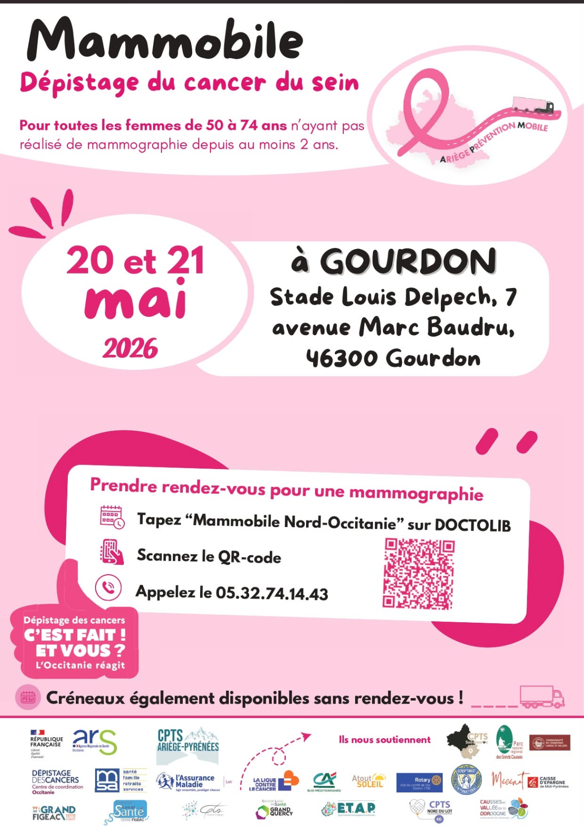 L’Agence Régionale de Santé Occitanie (ARS) et la Caisse Primaire d’Assurance Maladie du Lot (CPAM) en partenariat avec le Centre Régional de Coordination du Dépistage des Cancers (CRCDC) et des acteurs locaux (Contrats Locaux de Santé, élu-e-s,Communauté Professionnelle Territoriale de Santé) ont organisé la venue du Mammobile dans le Lot.